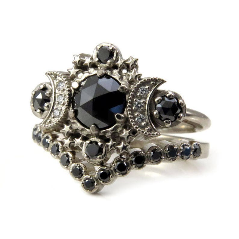 Gothic Triple Moon Engagement Ring Set - Labradorite And ... from s3.weddbook.com It features 1 carat round cut lab created black diamond and 1 carat moissanites that can be a perfect alternative to diamonds as moissanites have almost the same durability and. Blue diamond gothic engagement ring $975.00 this blue diamond gothic engagement ring will be stunning. Rose cut black diamond engagement and wedding ring set in palladium from. Gothic rings often showcase black diamonds, which resemble strength and passion, or rubies, which represent romance. The lora ring from iz&co. Black diamond swirl engagement ring set reg. Sign in / create an account. 5 out of 5 stars.